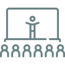 The room is equipped with a 2×1.5 projection screen, sockets, HDMI cables and a broadband fibre connection.